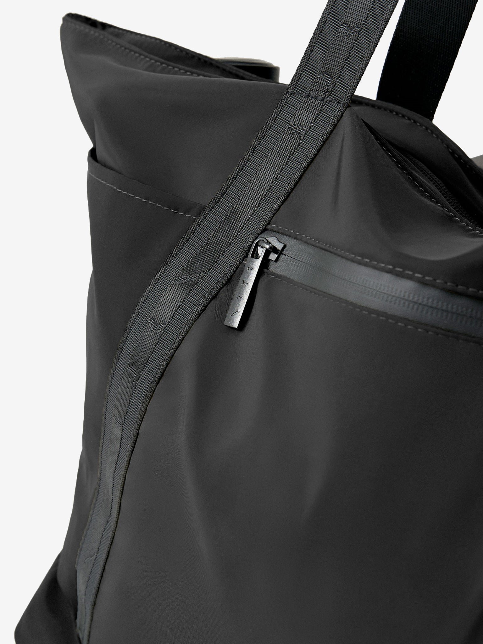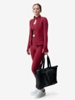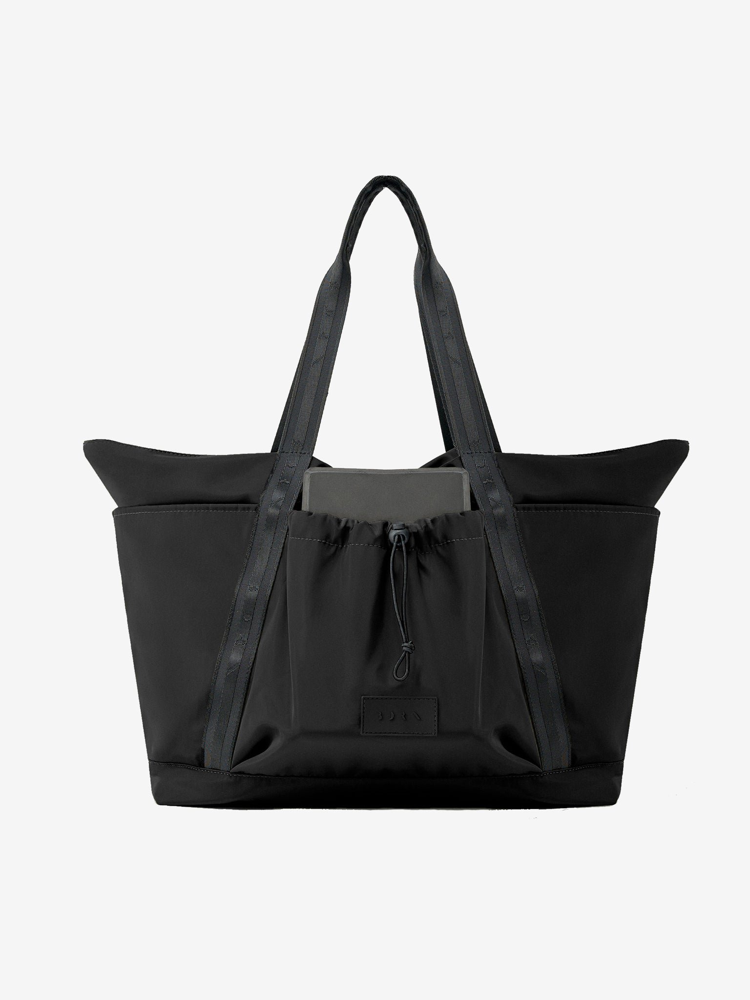Large capacity studio bag with 6 exterior pockets, one with elastic to hold a yoga block or other equipment, 4 quick-access pockets and one zipped pocket.