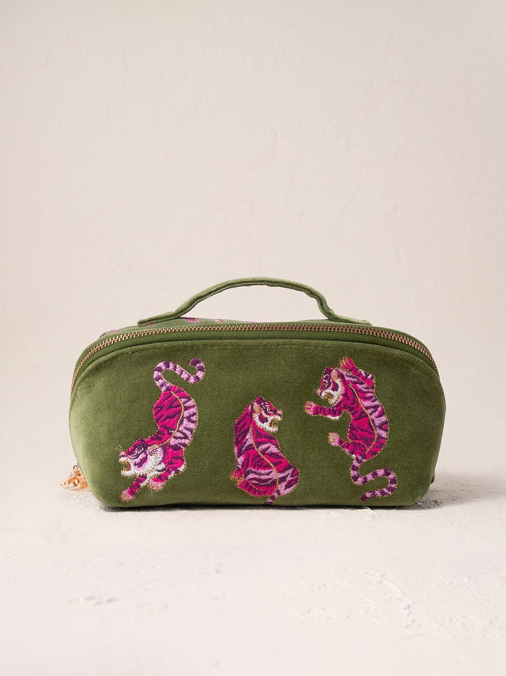 Say goodbye to rummaging and loose lipsticks: this clever makeup bag lays flat to reveal your full routine, beautifully laid out. Vibrantly embroidered in vivid threads, this design mirrors the fierce, untamed beauty of the natural world. Bold, brave and beautiful, this design is set to bring a touch of the wild to their everyday.
