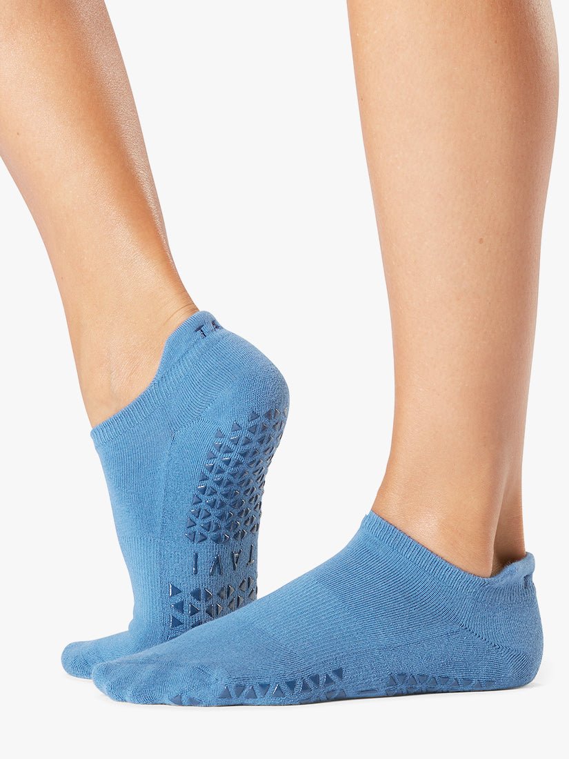 Savvy’s low rise design hugs below the ankle while Tavi’s stellar grip sock pattern safely moves you through your barre, Pilates, and yoga classes. A classic silhouette that never goes out of style.