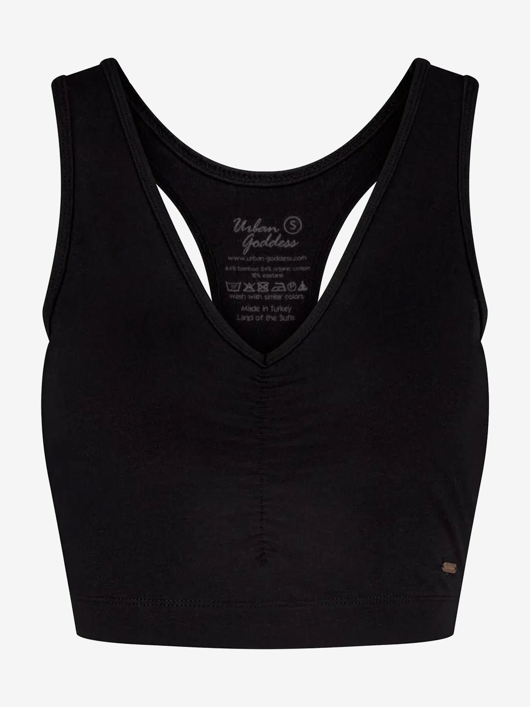 Urban Goddess use only certified organic cotton for their yoga & sportswear. The Anjea bra is OCS (Organic Content Standard) certified. In addition, the bamboo is this bra is Oekotex STeP certified, which is the highest closed loop environmentally friendly and safe variant of bamboo. Urban Goddess produces completely carbon neutral. Also, Urban Goddess yoga apparel is Peta approved vegan, so Urban Goddess is truly sustainable, good for you, good for the planet.