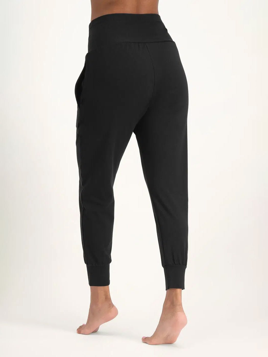 The Bhumi loose yoga pants offer a relaxed fit, perfect for free movement during practice. Made from a sustainable bamboo and organic cotton blend, these dry-fit pants stay comfortable all day. With a soft waistband and ankle cuffs, they stay in place for any asana. Great for yoga or loungewear.