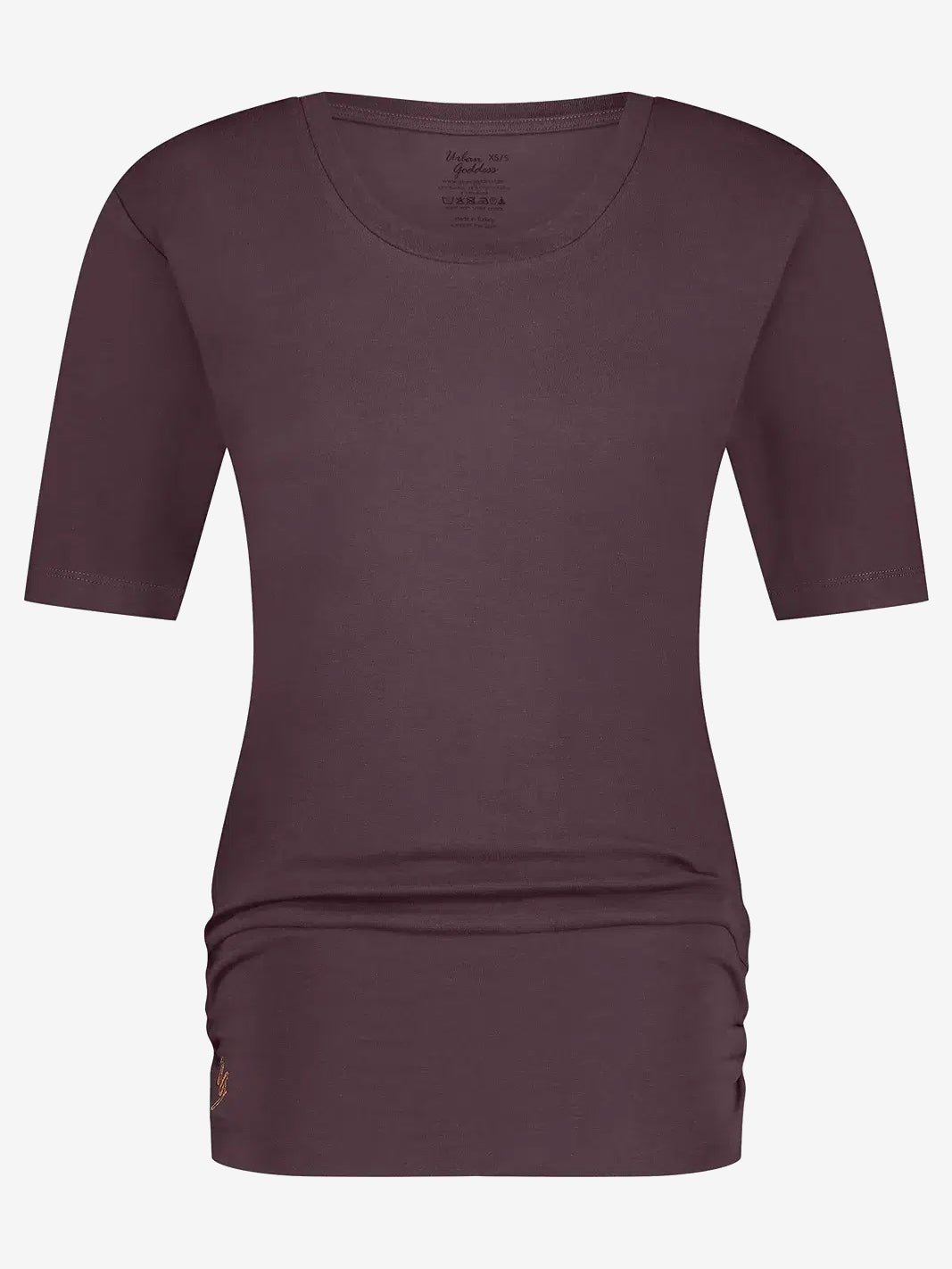 Enhance your yoga practice with the Urban Goddess Kami yoga t-shirt. Made from a blend of sustainable bamboo and certified organic cotton, this comfortable shirt stays in place during even the most intense and dynamic yoga & Pilates sessions. Naturally antibacterial and moisture-wicking, it’s perfect for all your yoga classes.