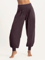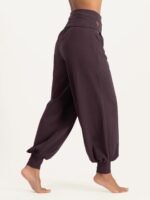 The Rhea yoga pants are stylish yoga pants with a loose fit. The women’s yoga pants have a fine wrap-around waistband and ankle cuffs that keep the pants in place. The soft wrap waistband allows you to style the trousers the way you like: high-or low-waist, whatever you like best!