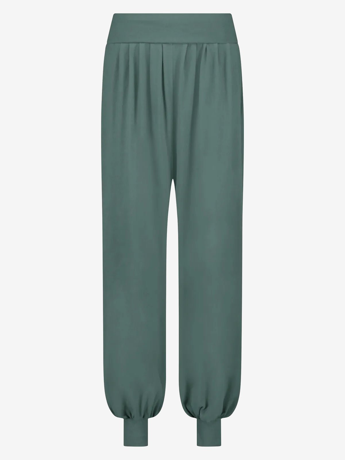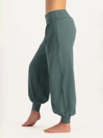 The Rhea yoga pants are stylish yoga pants with a loose fit. The women’s yoga pants have a fine wrap-around waistband and ankle cuffs that keep the pants in place. The soft wrap waistband allows you to style the trousers the way you like: high-or low-waist, whatever you like best!